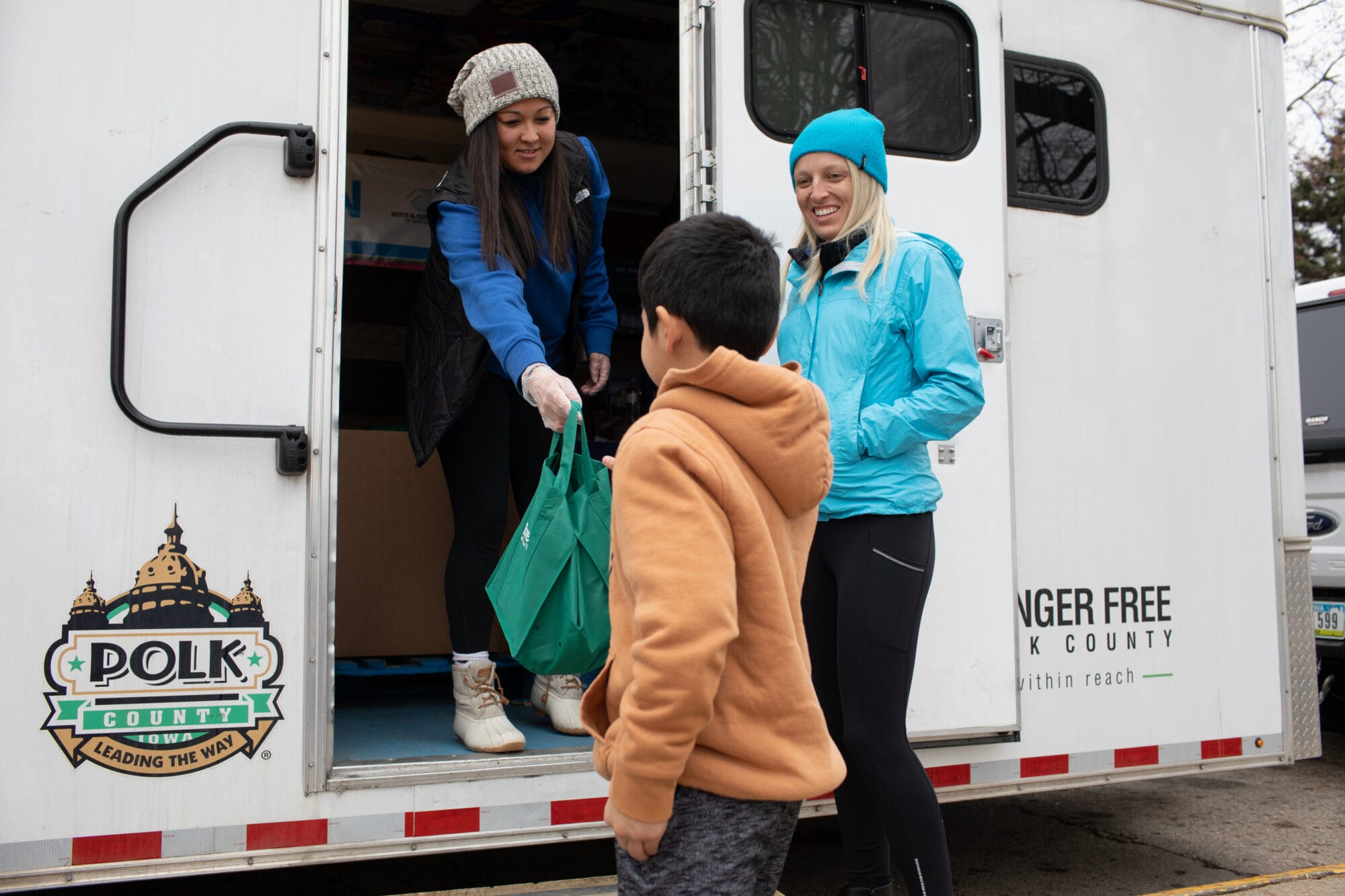 Each Saturday during the summer, at the end of Des Moines Downtown Farmers’ Market, volunteers collect and load donated produce into a truck for distribution from DMARC.